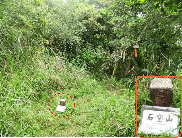 右上往石坑山,看了一下路況似乎已許久無人造訪,但路標註明登頂只須10~15分,